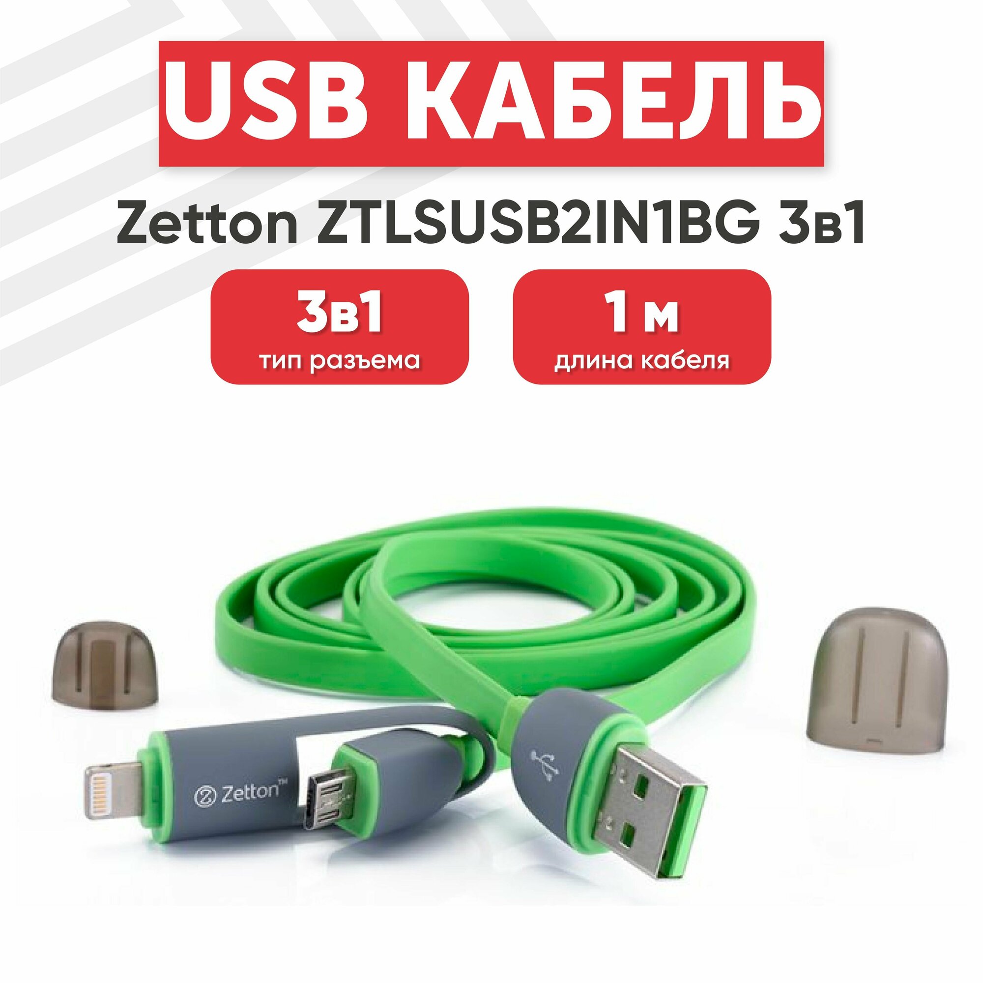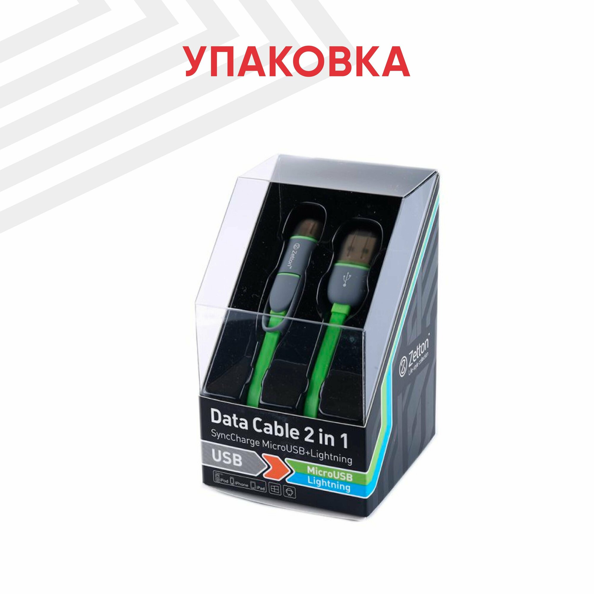 Кабель ZETTON USB передачи данных 2 в 1 разъем Apple Lightning/Micro USB зеленый
