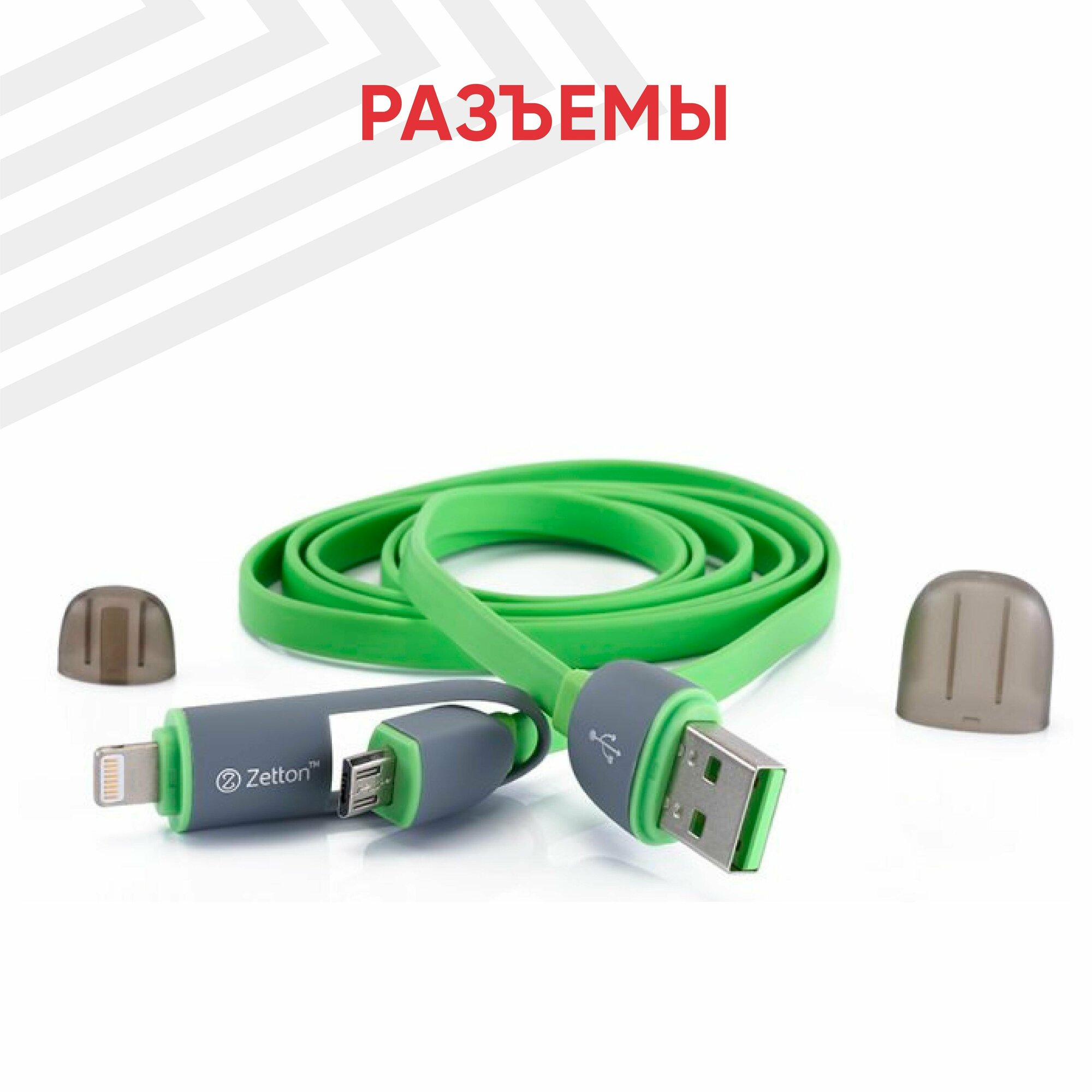 СохранитьUSB кабель передачи данных Zetton 2в1 разъем для Apple Lightning 8 pin/Micro USB зеленый (ZTLSUSB2IN интересное: