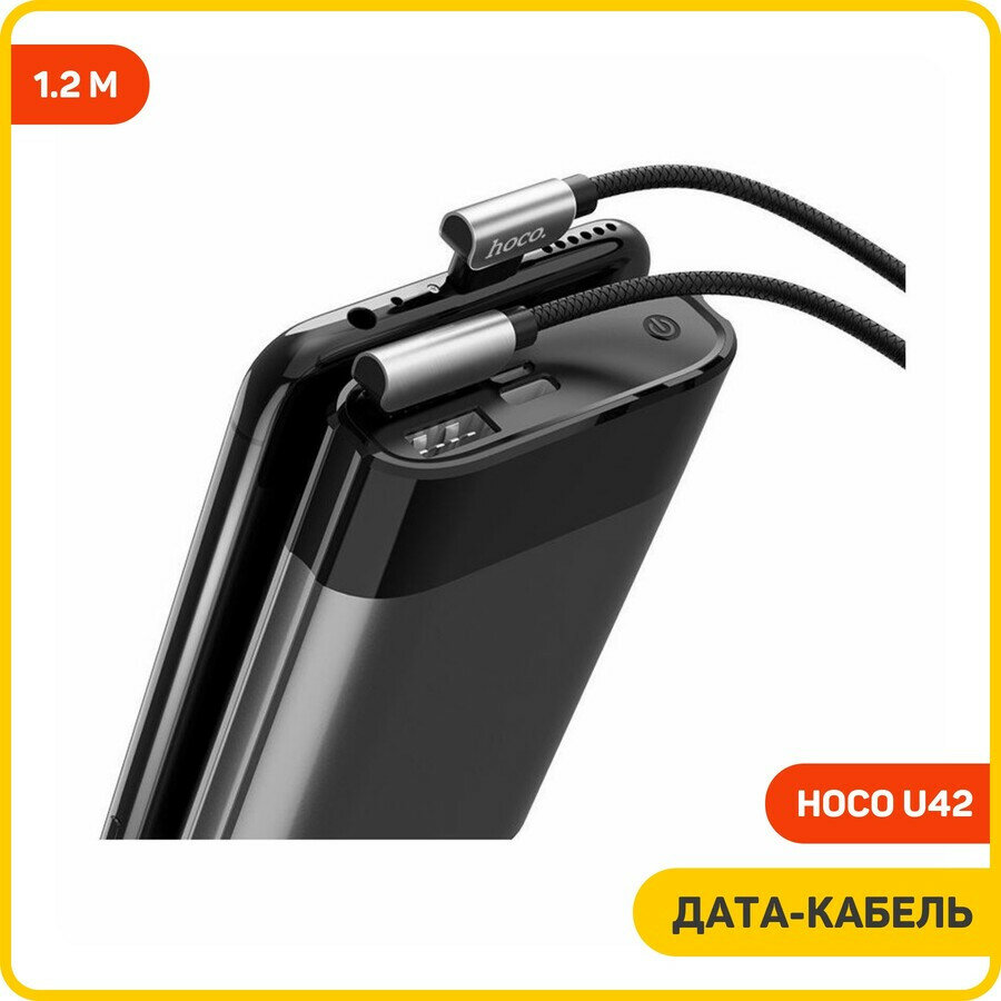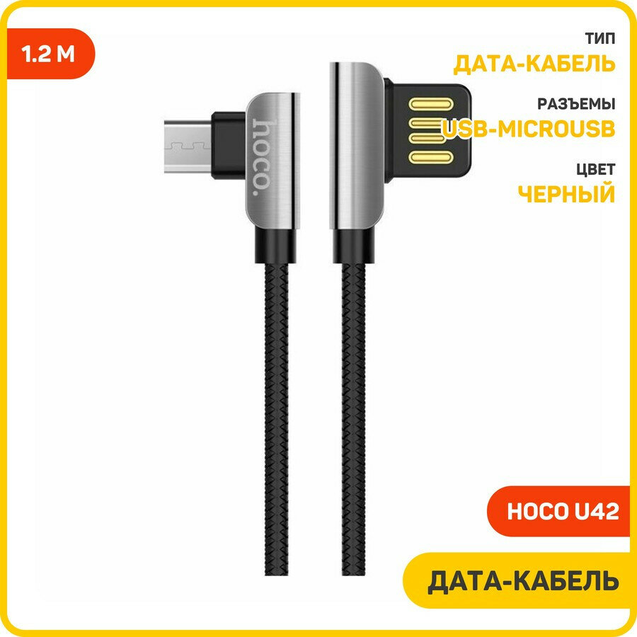 Кабель USB2.0 Am-microB Hoco U42 2.4A Black, оба коннектора угловые, сталь, черный - 1,2 метра