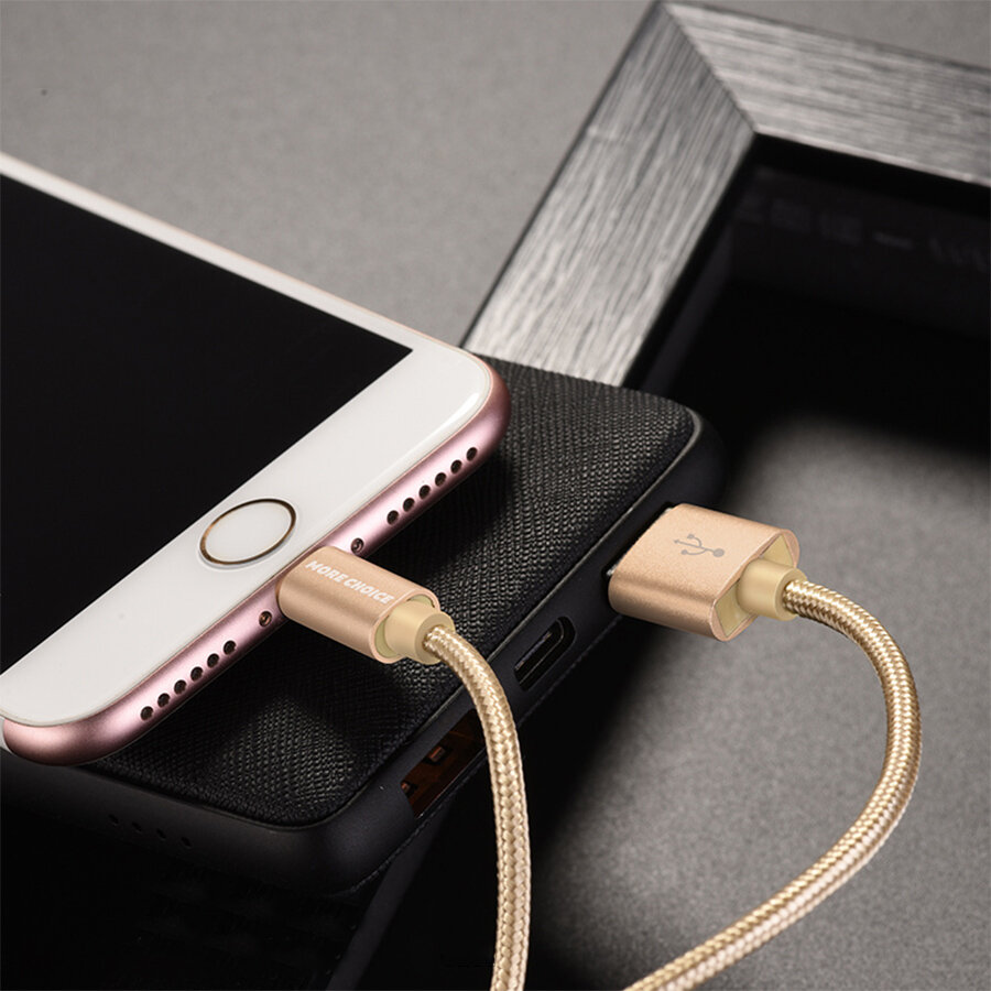 Кабель USB 2.0 Hoco X2 текстильная оплетка, AM/Lightning M, золотой, 1 м