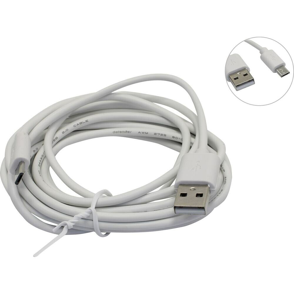 Кабель Defender USB - microUSB (USB08-10BH), 3 м, белый