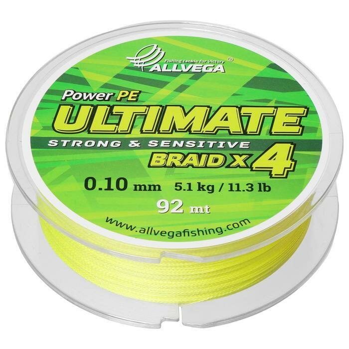 Плетеный шнур Allvega Ultimate 92м, 0.10мм (5.1кг) (светло-зелёный)