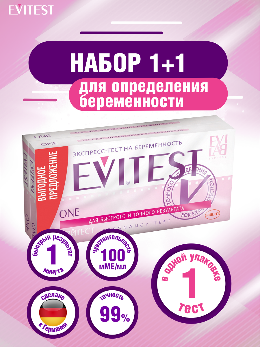 EviTest One, тест на беременность, набор 1+1