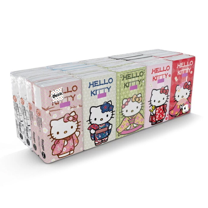 Купить Бумажные платочки "Hello Kitty" с рисунком, 4 слоя, 20 пачек х 9 листов, 21х21 см