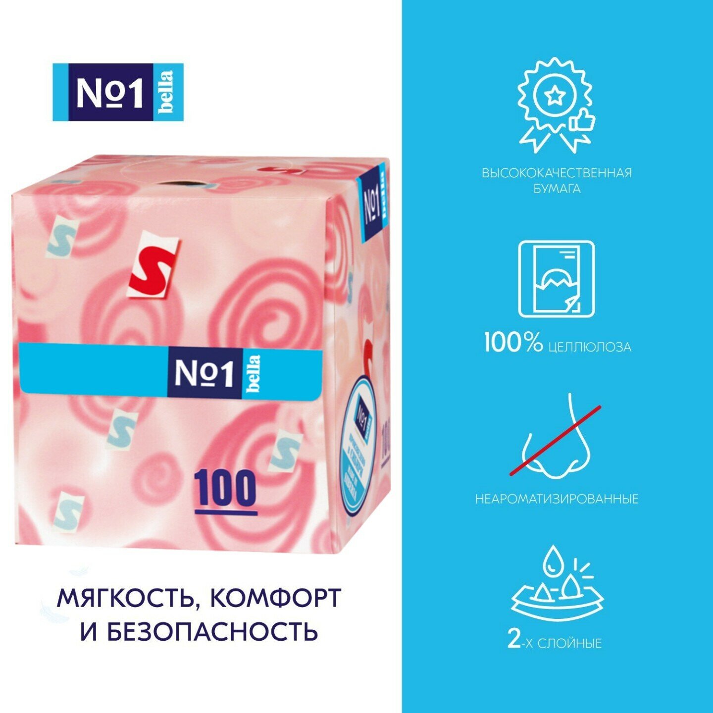 Платочки Bella №1 косметические двухслойные 19.5 х 19.5 см, 100 шт.