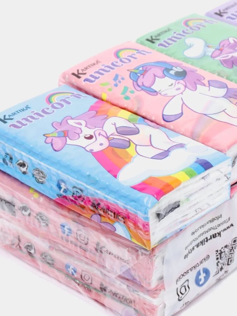СохранитьБумажные платочки "Единорог" 4-х слойные, 15 пачек х 9 листов, 21х21 см, Kartika Collection, World Cart интересное: