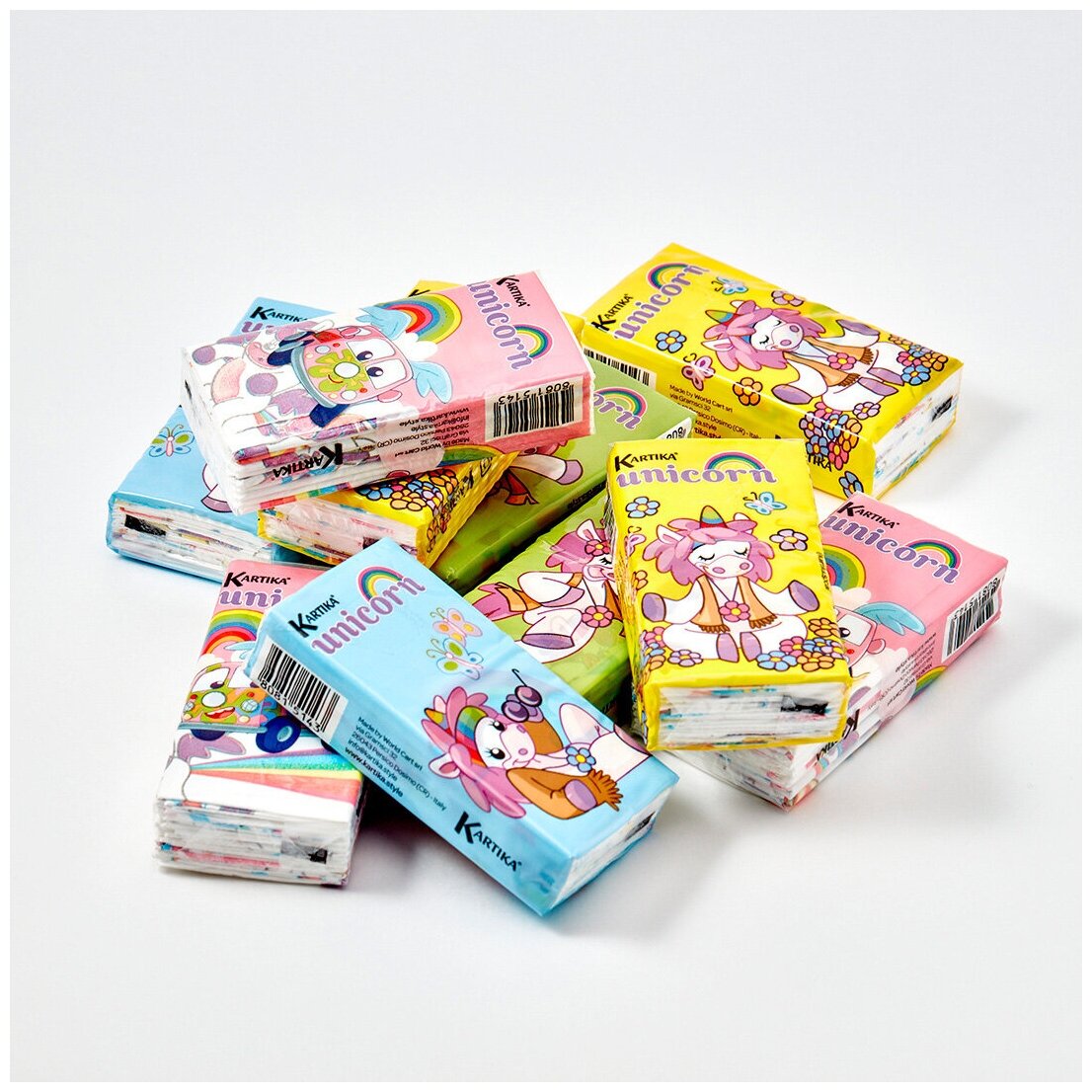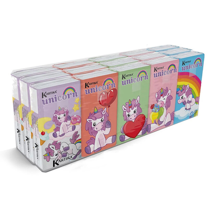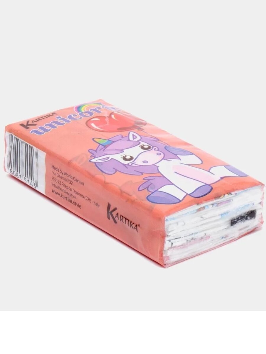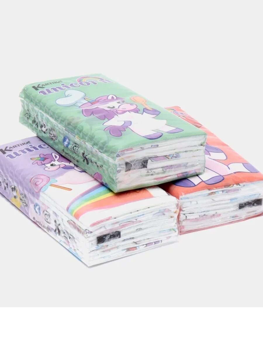 Купить Бумажные платочки "Единорог" 4-х слойные, 15 пачек х 9 листов, 21х21 см, Kartika Collection, World Cart