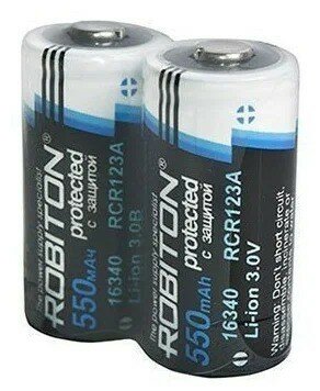 Аккумуляторы литиевые с защитой на 550мАч на 3,7В тип 16340 ( CR123А) (блистер 2шт - цена за блистер) - 16340 (Robiton) (код заказа 12224 )
