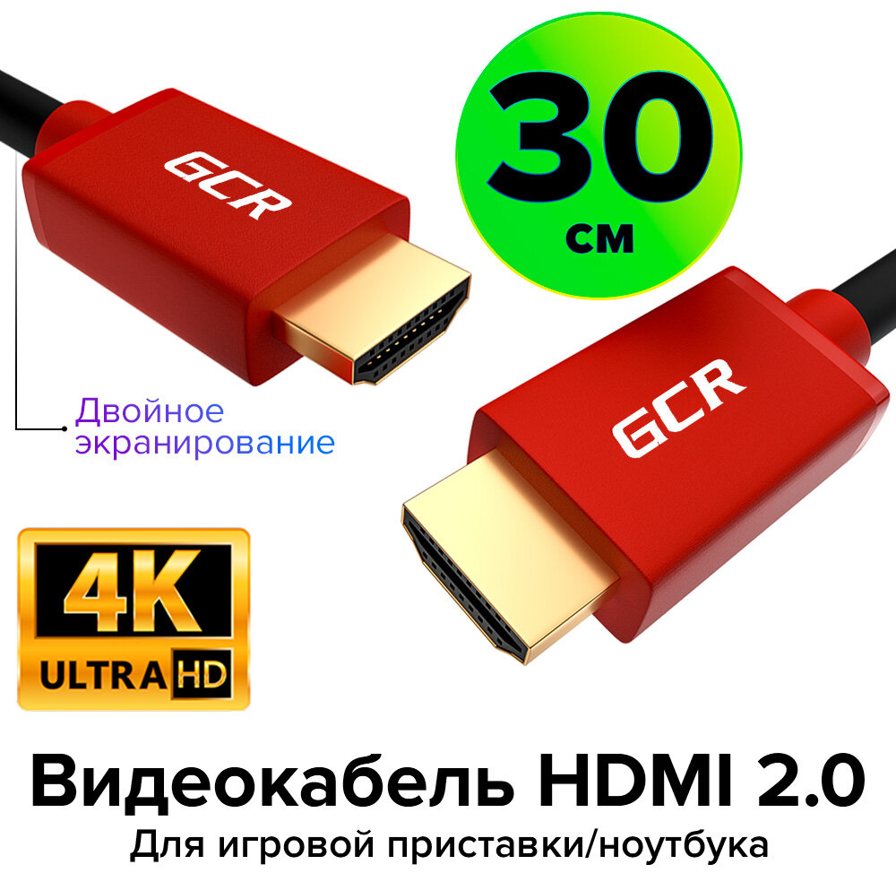 Купить Кабель HDMI 2.0 4K UltraHD HDR 3D 18 Гбит/с для PS4 PS5 Smart TV двойное экранирование (GCR-HM401) черный;красный 0.3м