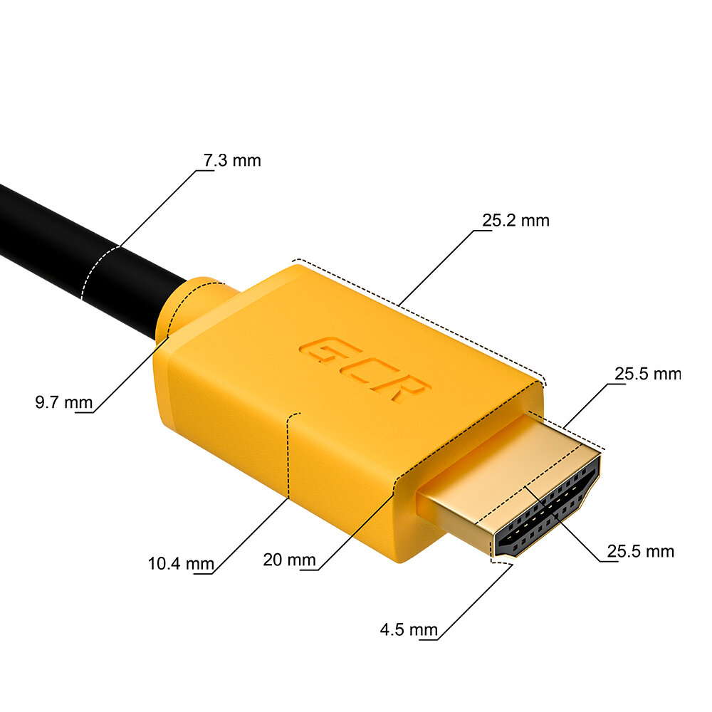 Провод HDMI 2.0 GCR 4K UltraHD HDR 3D 18 Гбит/с для PS4 PS5 Smart TV двойное экранирование (GCR-HM401) черный;желтый 1.5м
