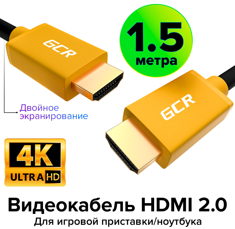 Провод HDMI 2.0 GCR 4K UltraHD HDR 3D 18 Гбит/с для PS4 PS5 Smart TV двойное экранирование (GCR-HM401) черный;желтый 1.5м