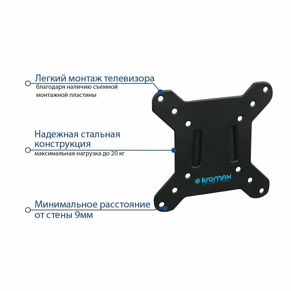 Купить Кронштейн настенный Kromax VEGA-3 Kromax_24043 15-32", макс. 20кг, 0 ст.свободы, от стены 15мм, макс. VESA 200x200