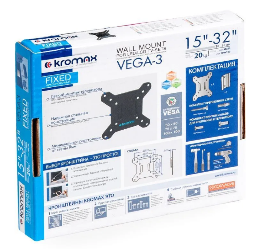 Ниже Вы можете прочитать отзывы на Кронштейн настенный Kromax VEGA-3 Kromax_24043 15-32", макс. 20кг, 0 ст.свободы, от стены 15мм, макс. VESA 200x200, ознакомится с подробными характеристиками, посмотреть интересные обзоры и фотографии на Кронштейн настенный Kromax VEGA-3 Kromax_24043 15-32", макс. 20кг, 0 ст.свободы, от стены 15мм, макс. VESA 200x200.