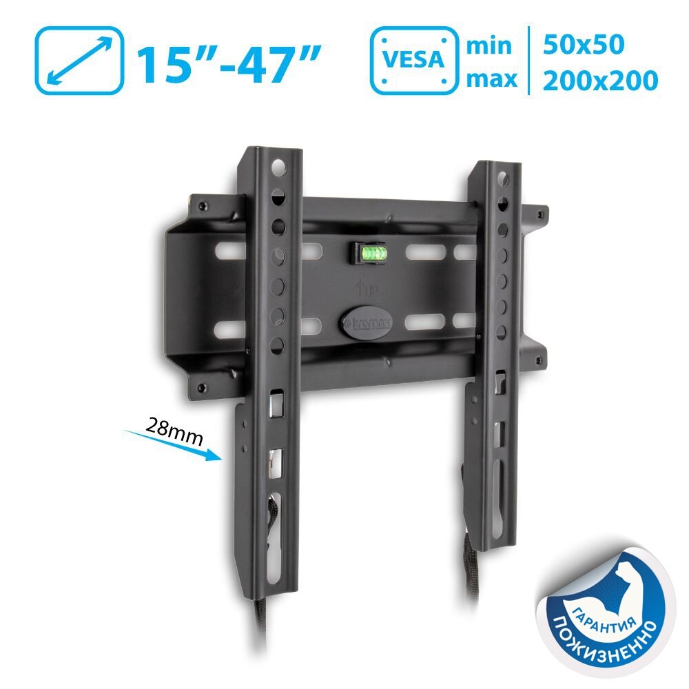 Кронштейн настенный Kromax FLAT-5 15-47" (фиксированный, вылет 28 мм, до 35 кг, чёрный)