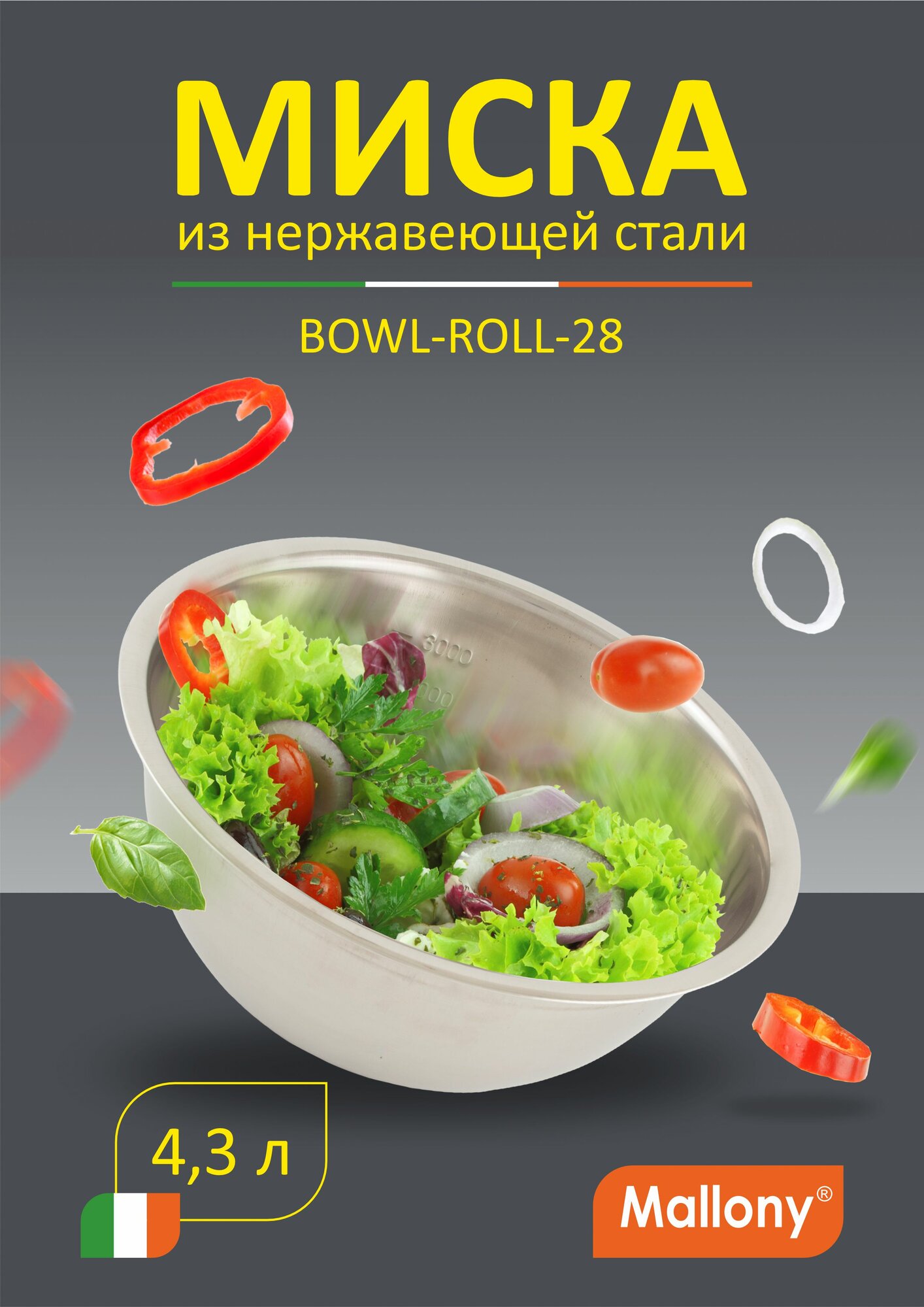 Миска 4,3л нерж.сталь, d=28см, h=11,1см, BOWL-ROLL-28, 3279 Mallony (арт. 716181)