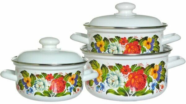 Набор посуды эмаль №124 италия (1,5л; 2л; 3л) лысьва