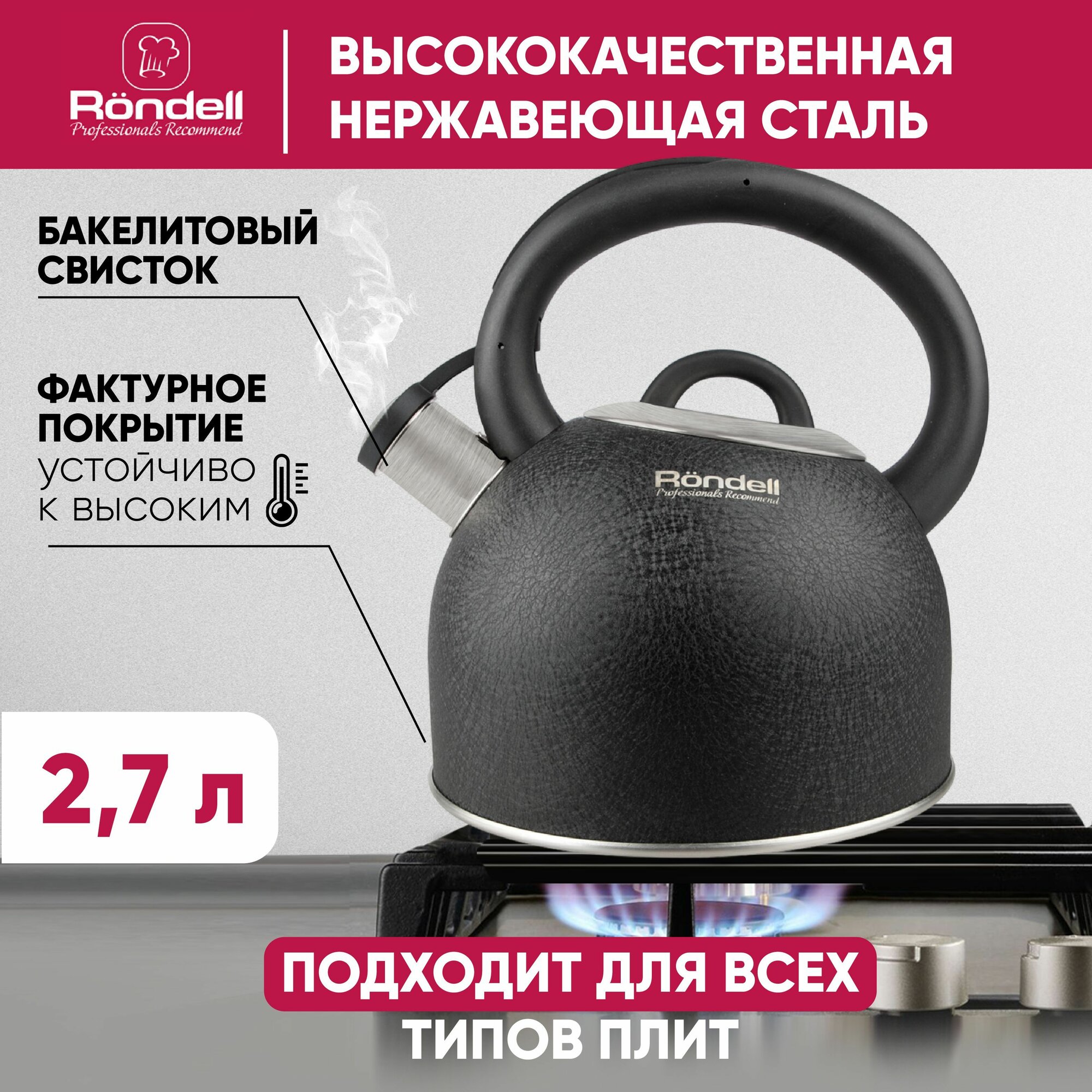 Rondell Чайник со свистком Infinity RDS-424 2.7 л, черный