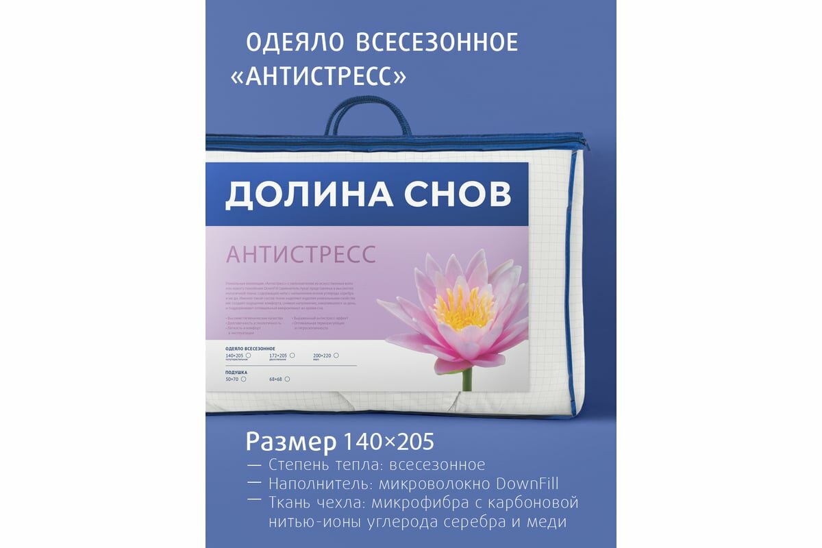 Одеяло лебяжий пух 1,5-спальное (140x205 см) Долина снов "Антистресс",чехол - высокотехнологичная микрофибра (100% п/э), Ecotex