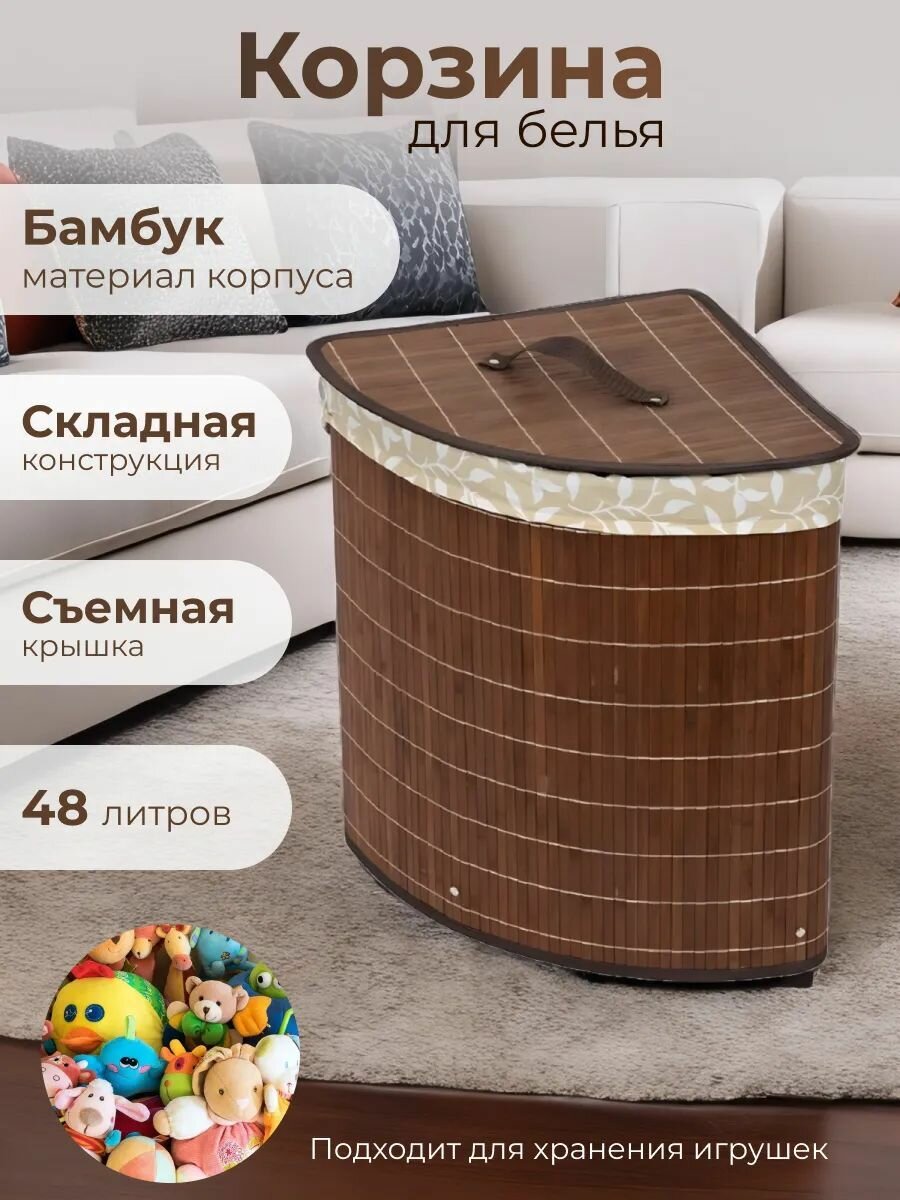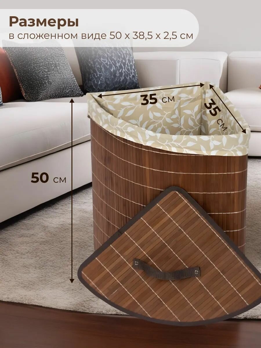 Корзина для белья угловая Рыжий кот BLB-07-D, 35 x 35 x 50 см, бамбук темный