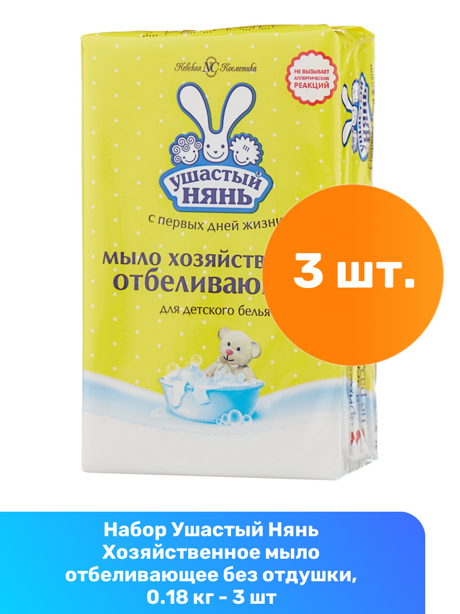 Купить Ушастый Нянь Хозяйственное мыло отбеливающее без отдушки, 0.18 кг - 3 шт
