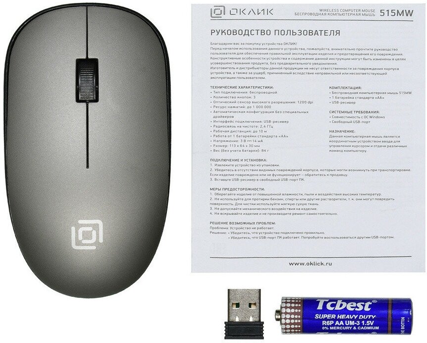СохранитьМышь Oklick 515MW черный/серый . интересное: