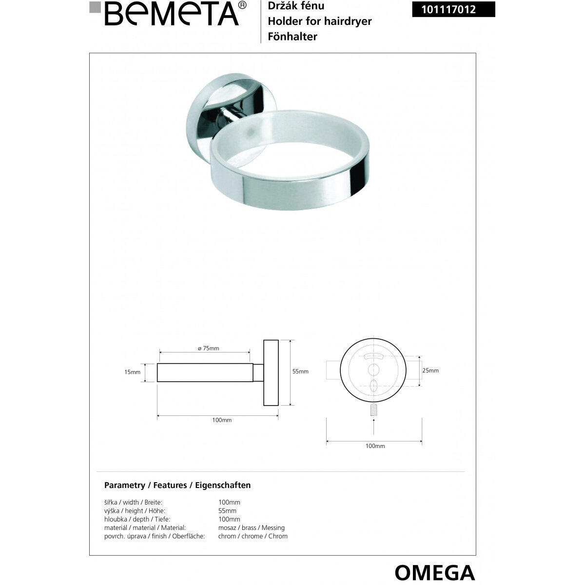 Держатель фена Bemeta Omega, 100x80мм, хром 101117012