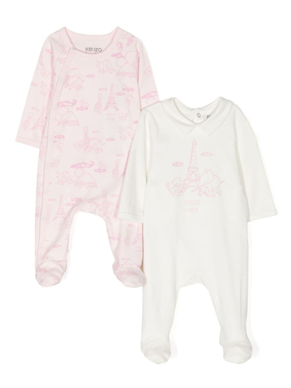 Купить Kenzo Kids - Хлопковая пижама с графическим принтом (комплект из двух штук) - Дети - 1 mth - Темно-розовый