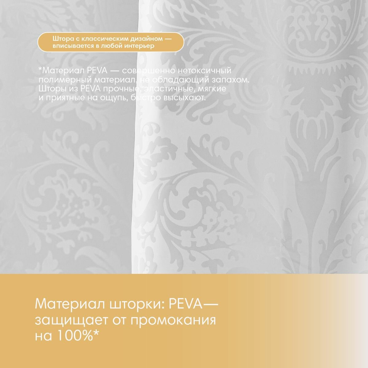 Занавеска (штора) Rogai для ванной комнаты пластиковая 180х180 см., цвет белый интересное: