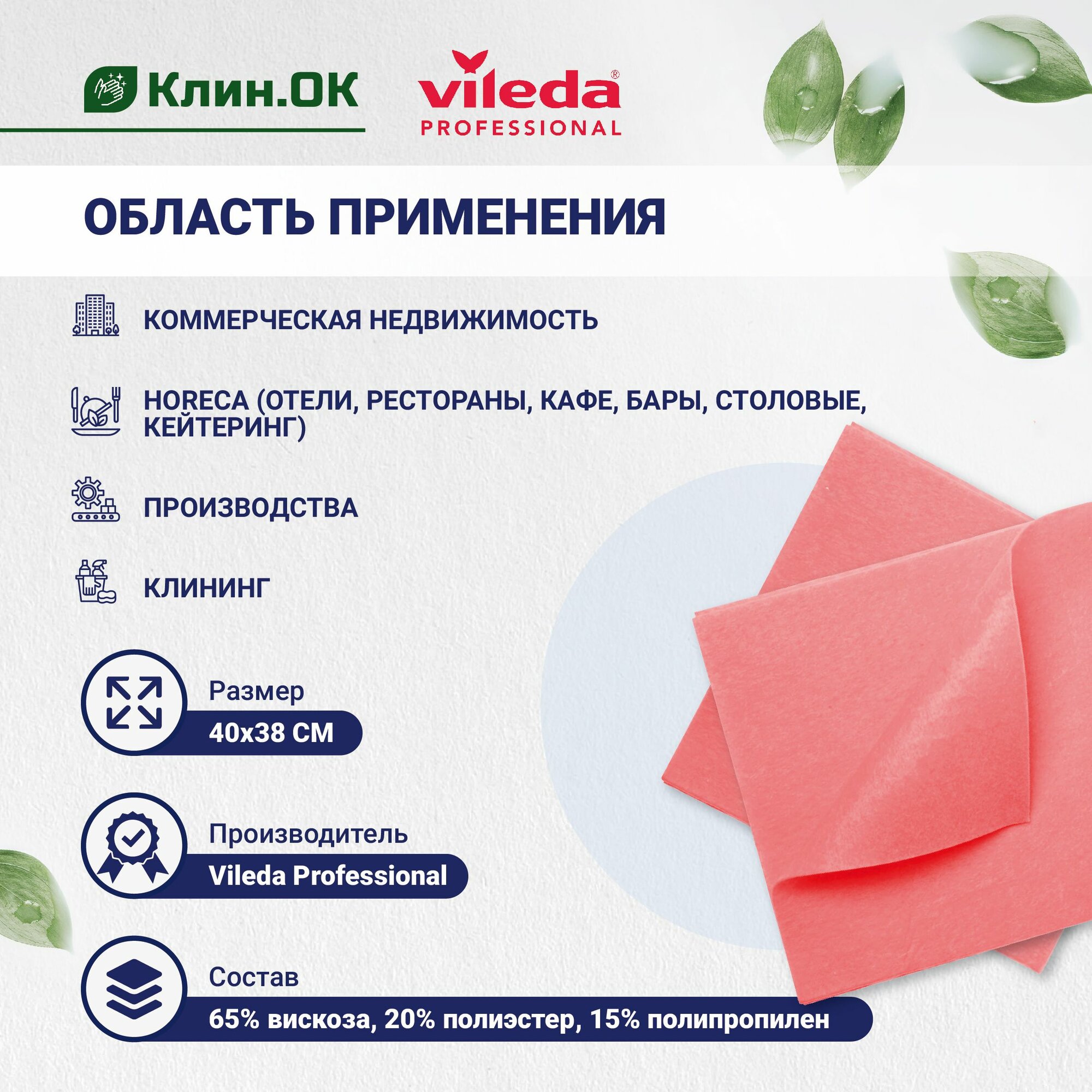 СохранитьСалфетки профессиональные для уборки Vileda Универсальные 38х40 см, красные, 10 шт. интересное: