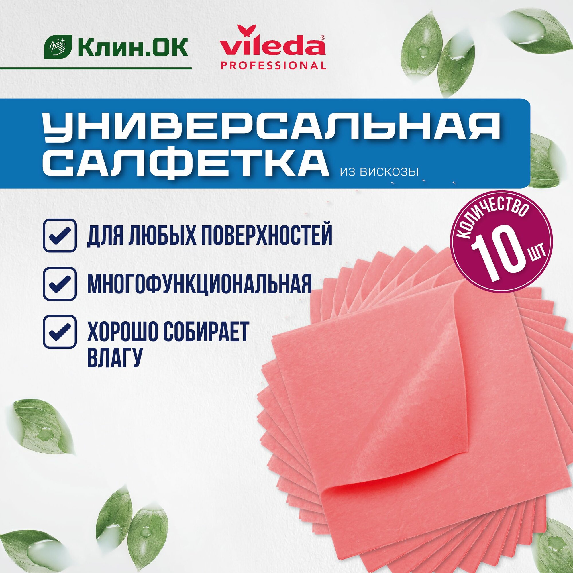 Салфетки хозяйственные Vileda универсальные, 38х40 см, 10 шт (101030)
