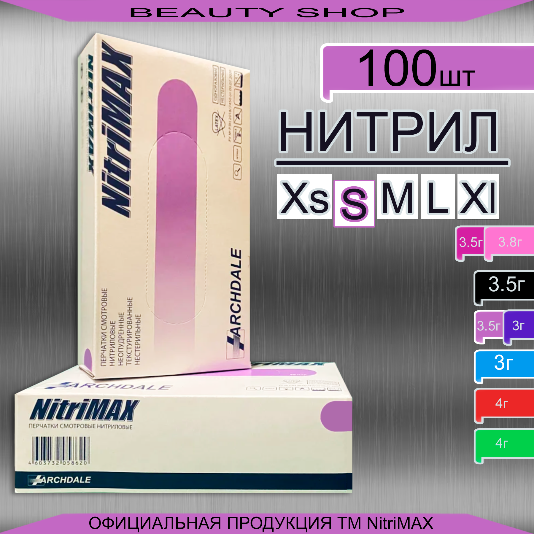 Купить Перчатки одноразовые медицинские Нитриловые Archdale NitriMAX,Сиреневые, S, 100 штук/50 пар, Неопудренные, Гипоаллергенные