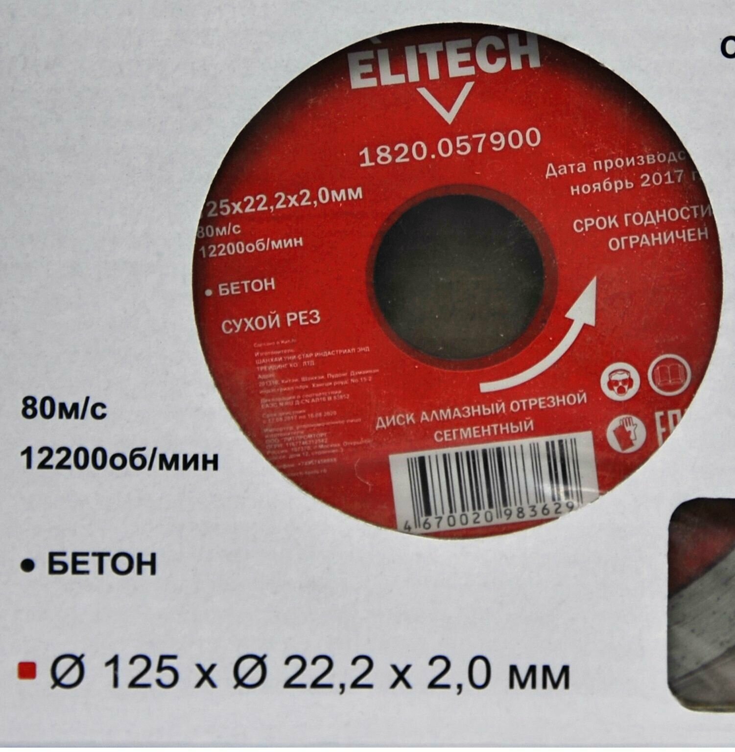 Диск алмазный Elitech 125x22.2 мм сегмент 1820.057900