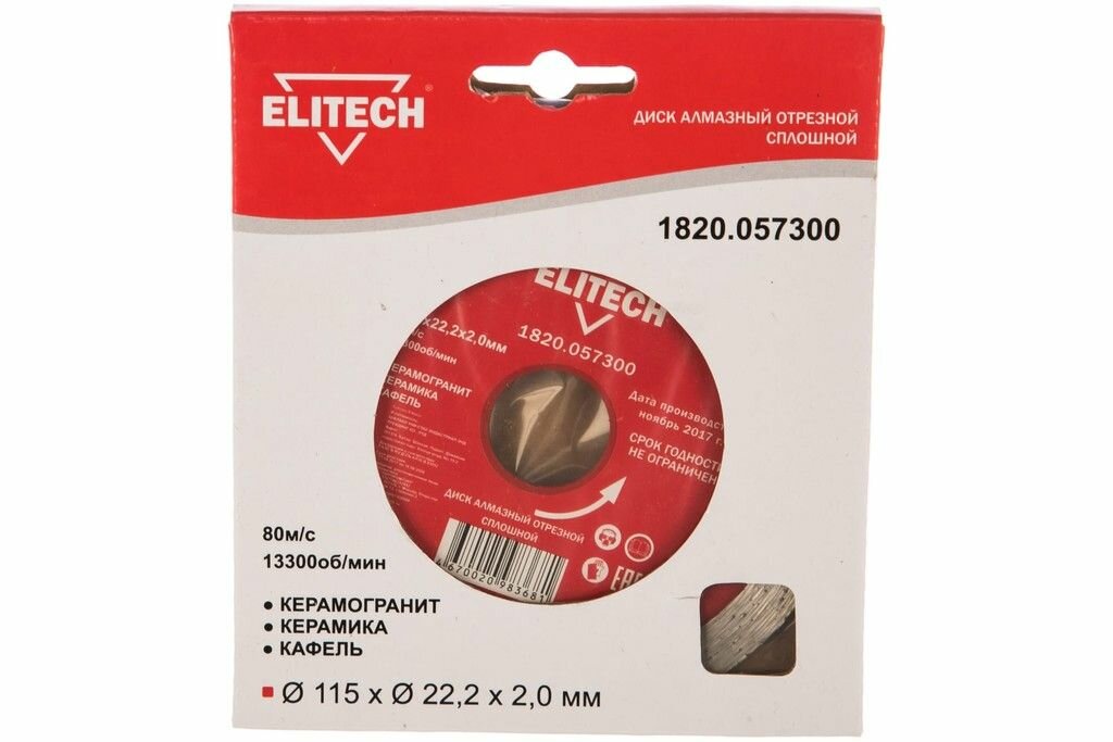 Купить Диск алмазный ELITECH сплошной, d115х22.2х2мм,д\плитки (1820.057300)