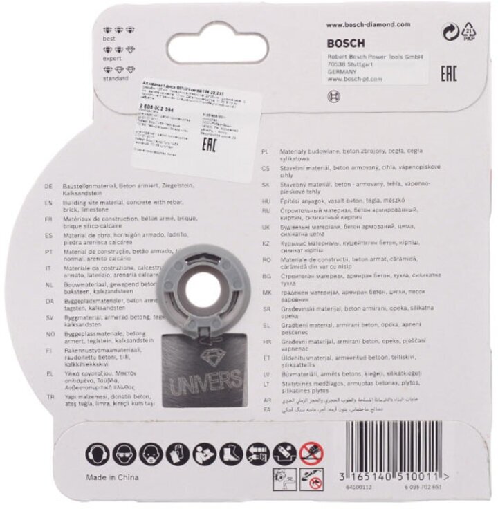 СохранитьАлмазный диск универсальный Bosch Standard for Universal Turbo (2608602394) d=125мм d(посад.)=22.23мм (угловые шлифмашины) интересное: