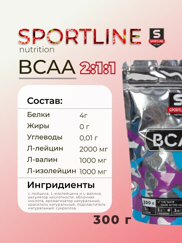 SportLine Nutrition BCAA 2:1:1, клубника, 300 гр. пакет