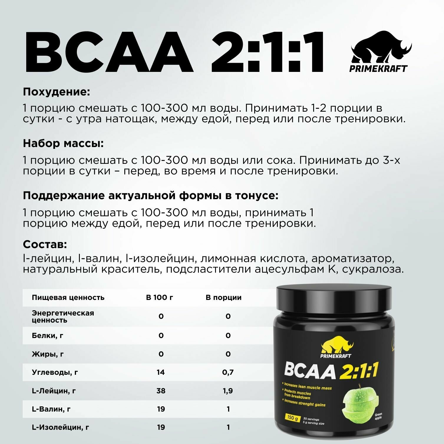 Prime Kraft BCAA 2.1.1, 150 g (яблоко зеленое)