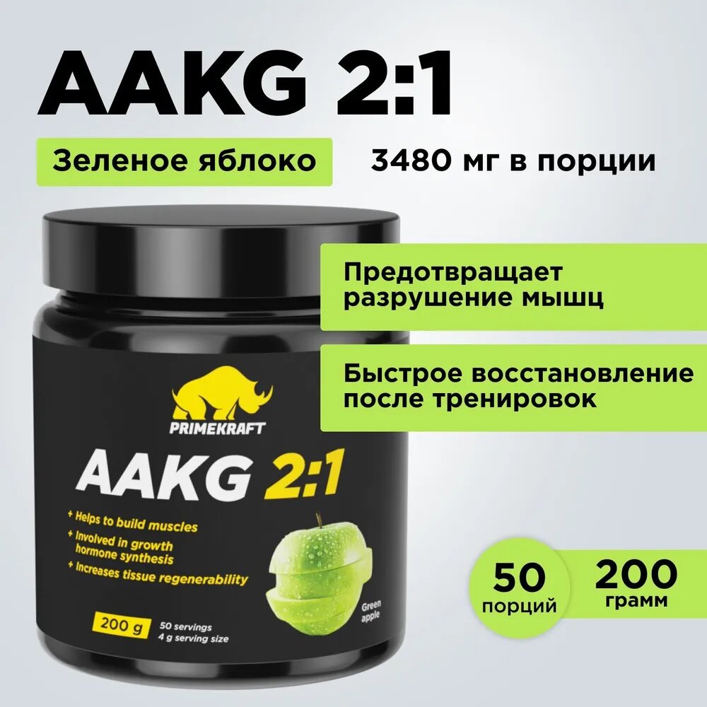 Аминокислота Prime Kraft AAKG 2:1, зеленое яблоко, 200 гр.