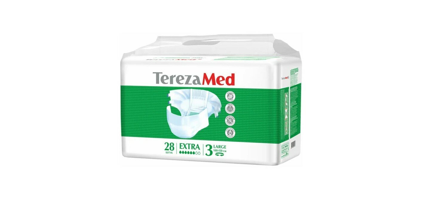 Подгузники для взрослых TerezaMed впитывающие на липучках Extra 90258 Large (№3), L 100-150 см (28 шт.)