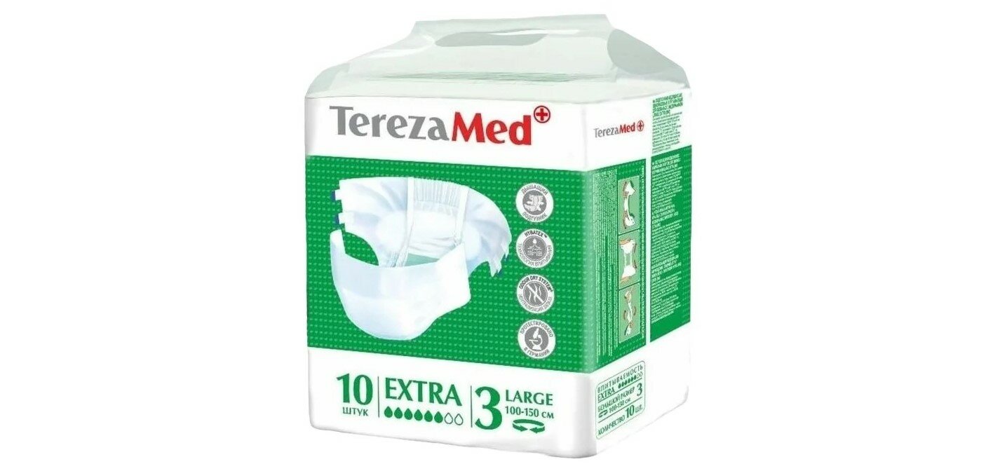 TerezaMed Подгузники для взрослых TerezaMed Extra размер Large (№3), объем талии 100-150 см, 10 шт.