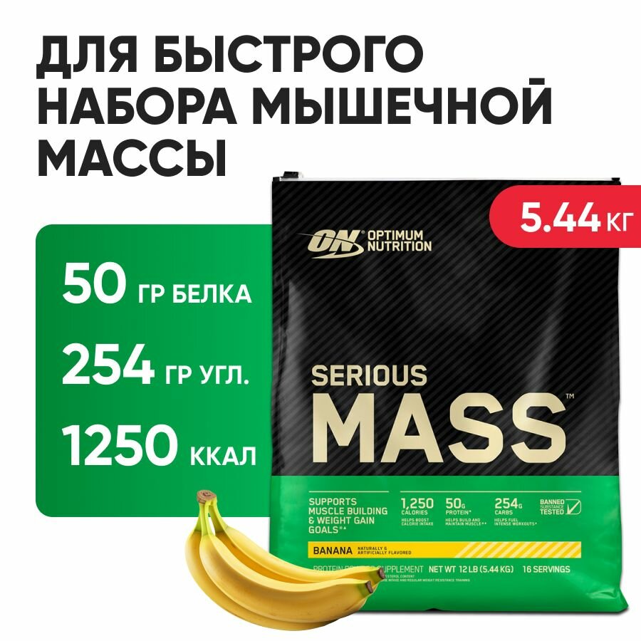 Гейнер для набора массы Optimum Nutrition Serious Mass, 5455 г, вкус: банан