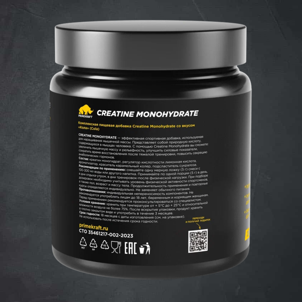 Купить Креатин Моногидрат Микронизированный PRIMEKRAFT Creatine Monohydrate Micronized, кола, банка 200 гр / 40 порций