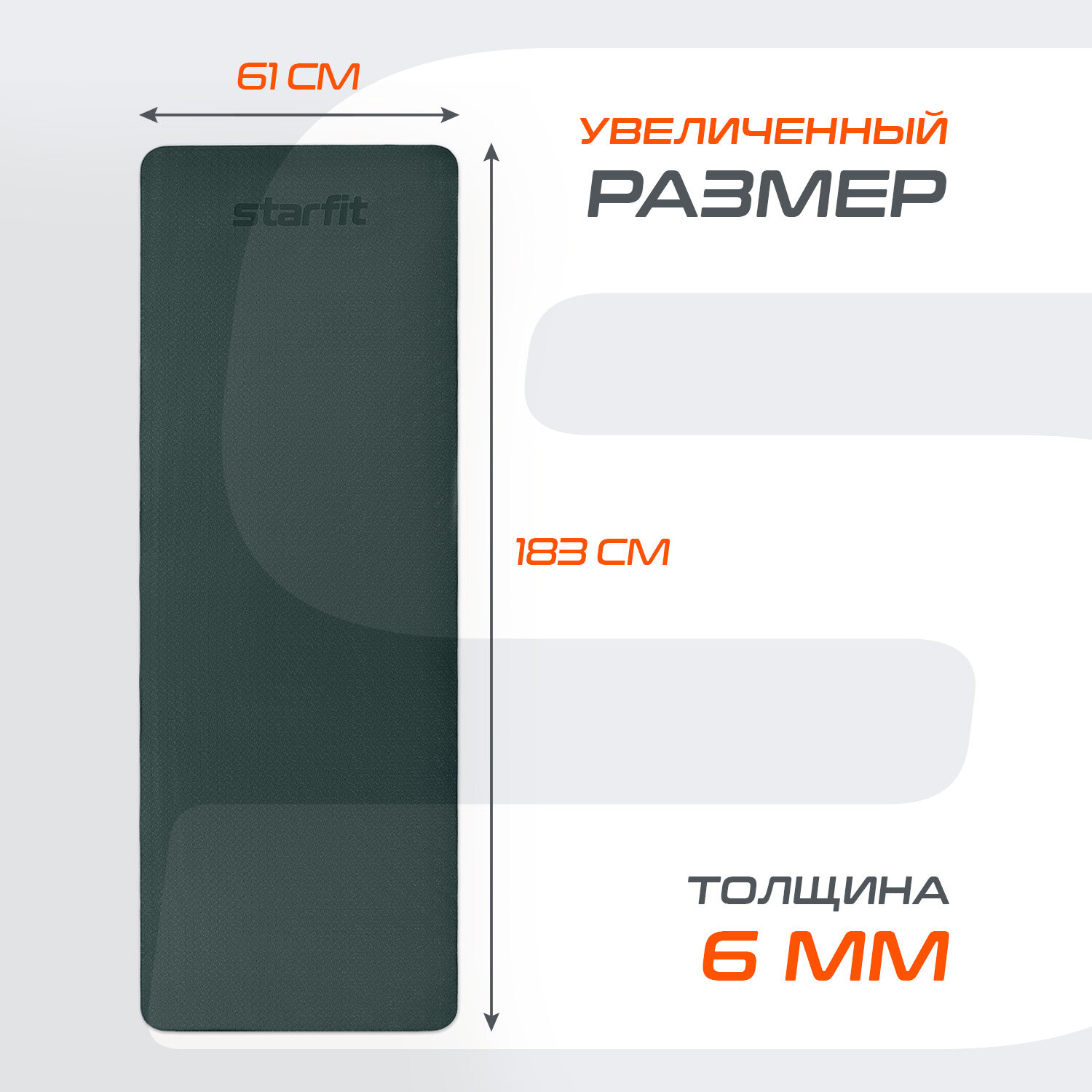 Коврик для йоги и фитнеса STARFIT FM-201 TPE, 0,4 см, 183x61 см, темно-серый/оранжевый