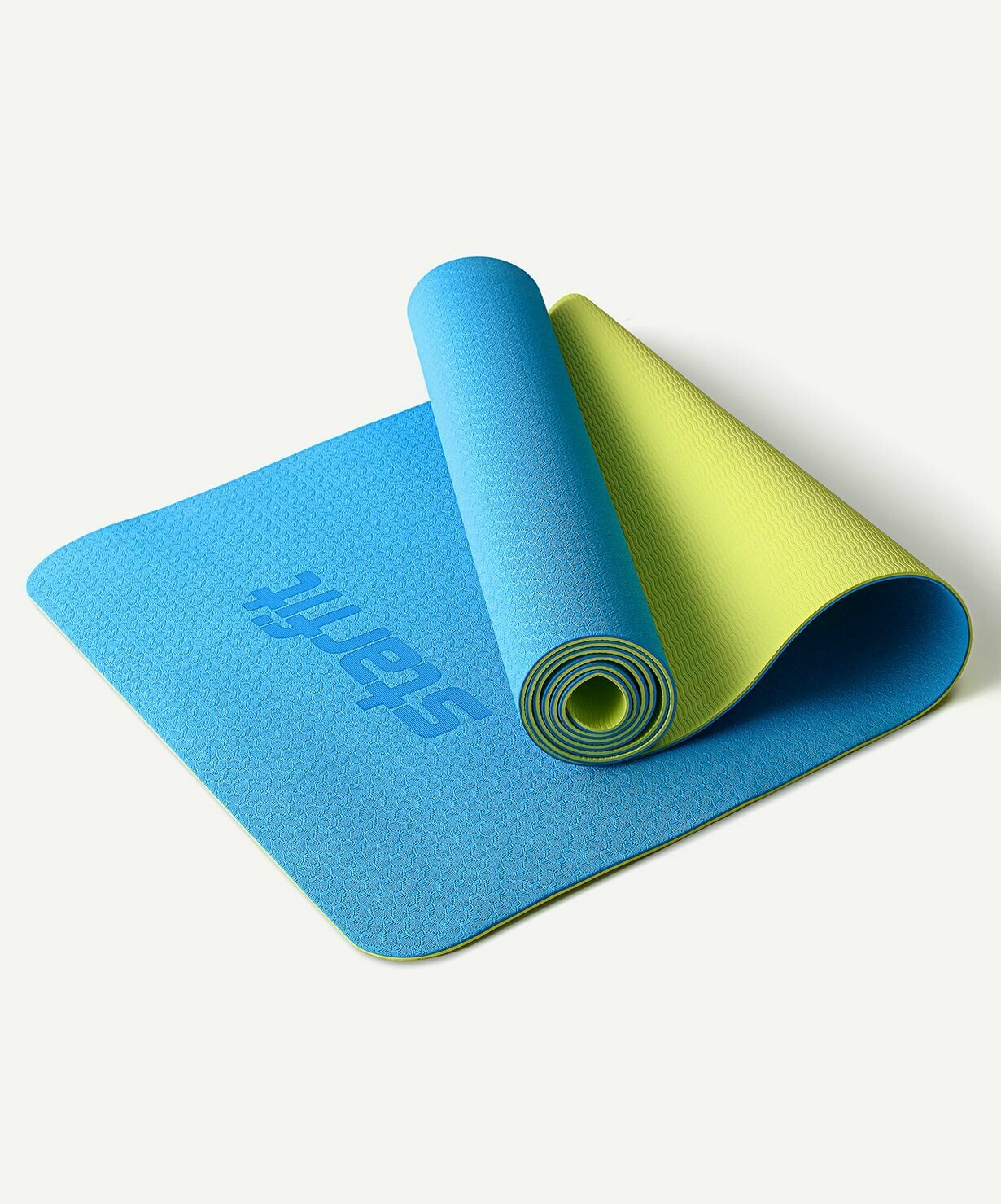 Коврик для йоги и фитнеса STARFIT FM-201, TPE, 183х61 см мятный/синий 0.4 см