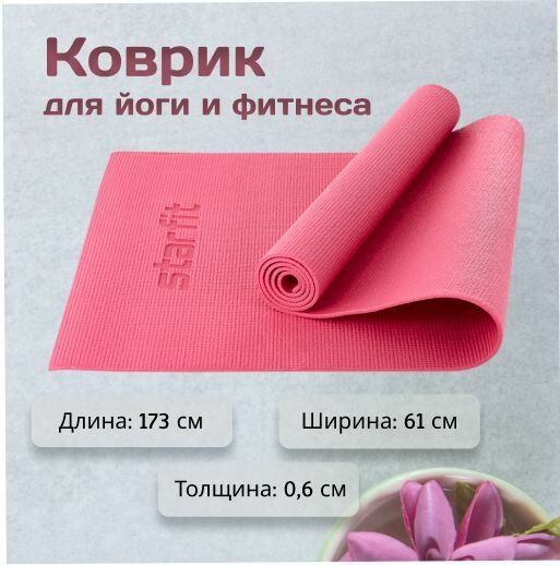Коврик для йоги и фитнеса STARFIT FM-101 PVC, 0,6 см, 173x61 см, розовый