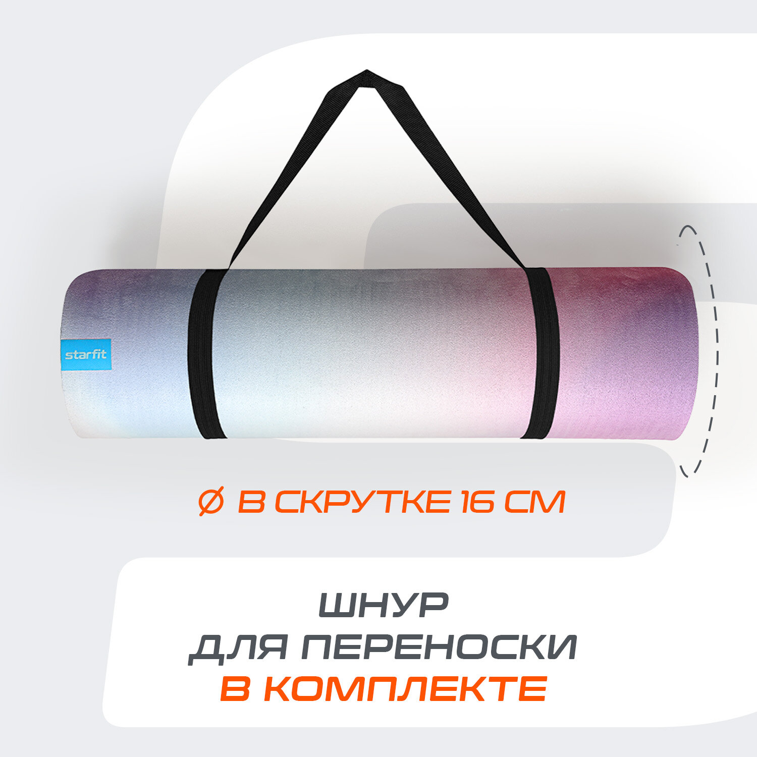 Коврик для йоги фитнеса STARFIT FM-301 NBR, 1,0 см, 183x61 см лиловый с шнурком для переноски