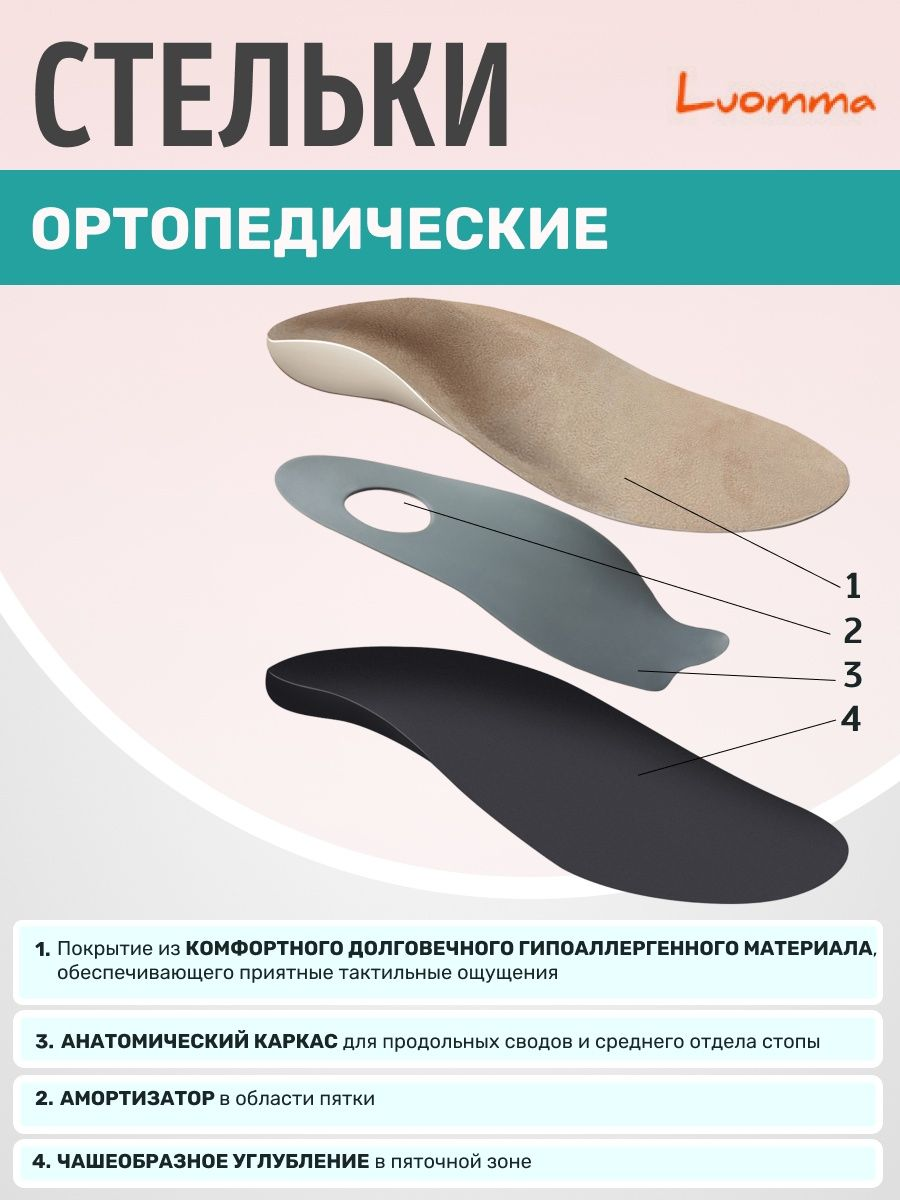 Стельки ортопедические с чашеобразной пяткой и жестким каркасом LUM202, Luomma, размер 41/42