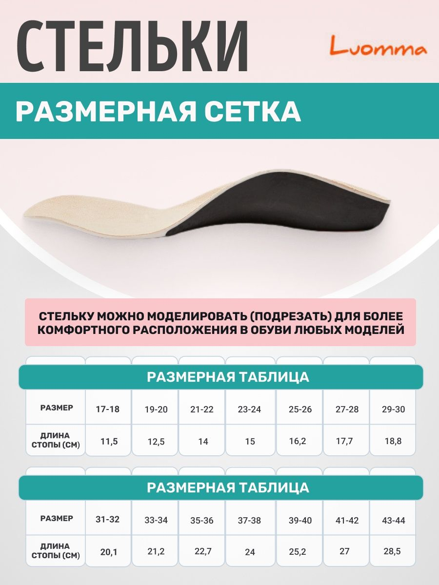 Стельки детские ортопедические с чашеобразной пяткой и жестким каркасом LUM202дет, Luomma, размер 17/18