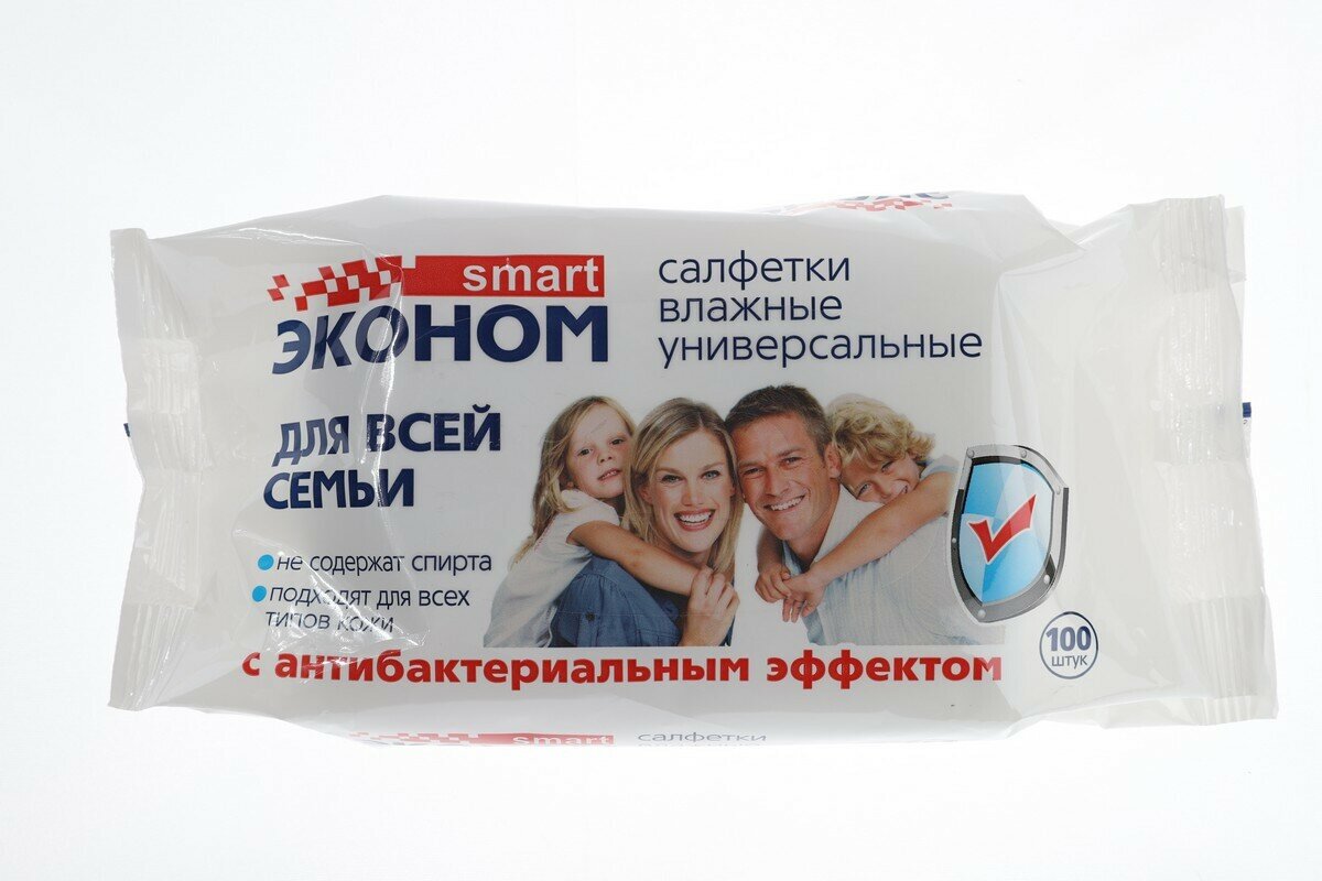 Салфетки влажные Эконом smart №100, для всей семьи, антибактериальные эффект, 100 шт (30258)