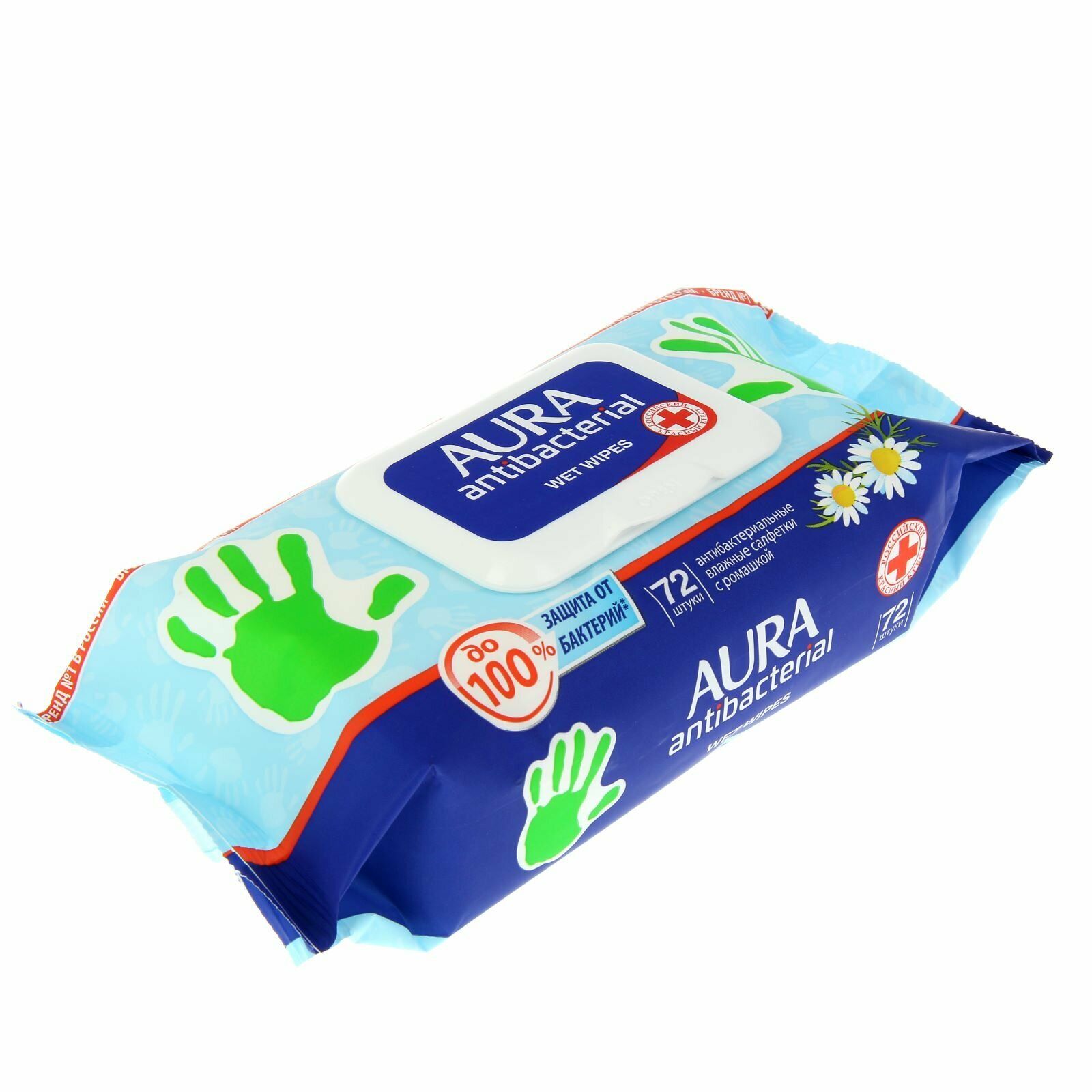 Aura Салфетки влажные очищающие антибактериальные с ромашкой, 72 шт