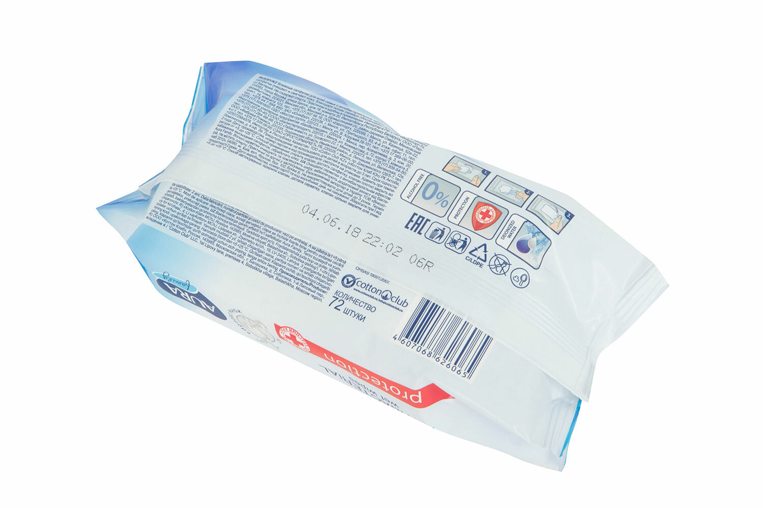 Влажные салфетки 72шт/уп, с антибактериальным эффектом AURA Family 26065 (Коттон Клаб) арт.7044(АН6!